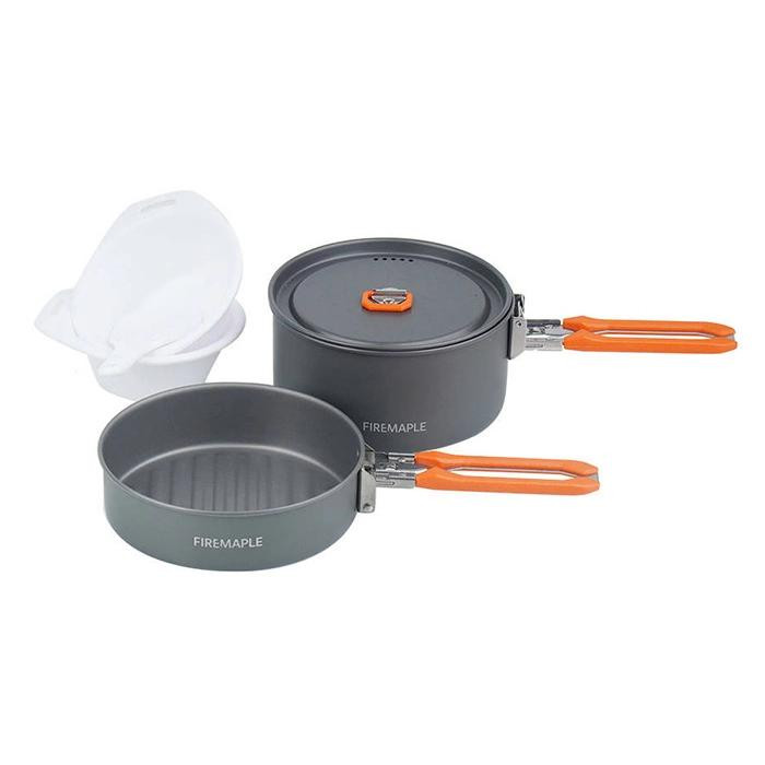 وزن کل مجموعه حدود 690 گرم می باشد قابلمه به حجم 1500 میلی لیتر ماهیتابه به حجم 700 میلی لیتر کتری به حجم 800 میلی لیتر دو عدد پیاله کوچک